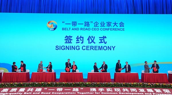 “一带一路”企业家大会签约仪式现场(2023年10月17日摄)。新华社记者 王毓国 摄
